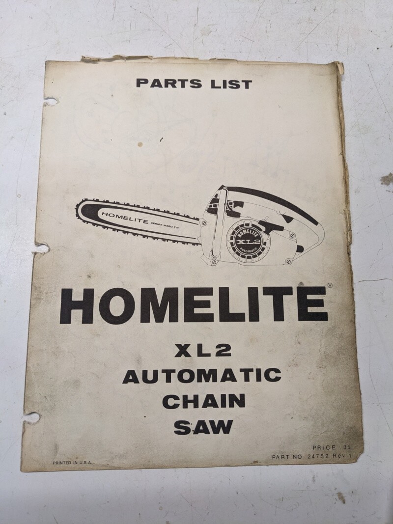Homelite Illustrated Parts Catalog List Book Manual Chain Saws Xl2 24752 Rev 1