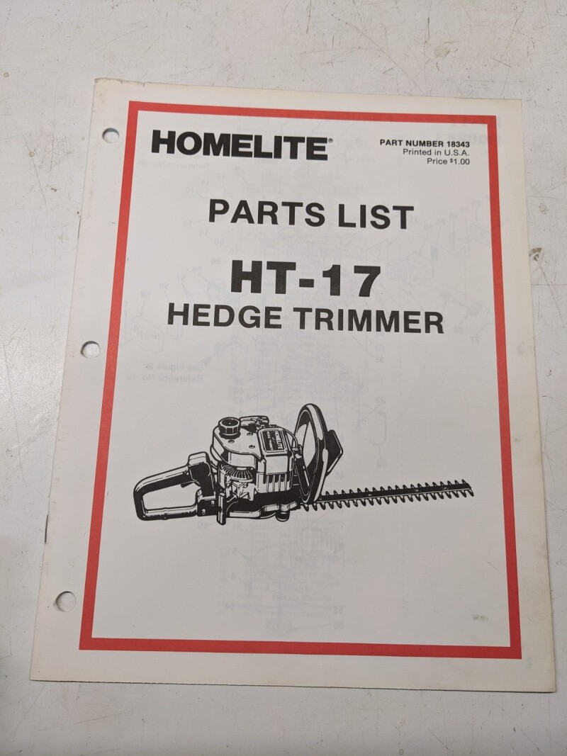 Homelite Illustrated Parts Catalog List Book Manual Hedge Trimmer Ht-17 18343