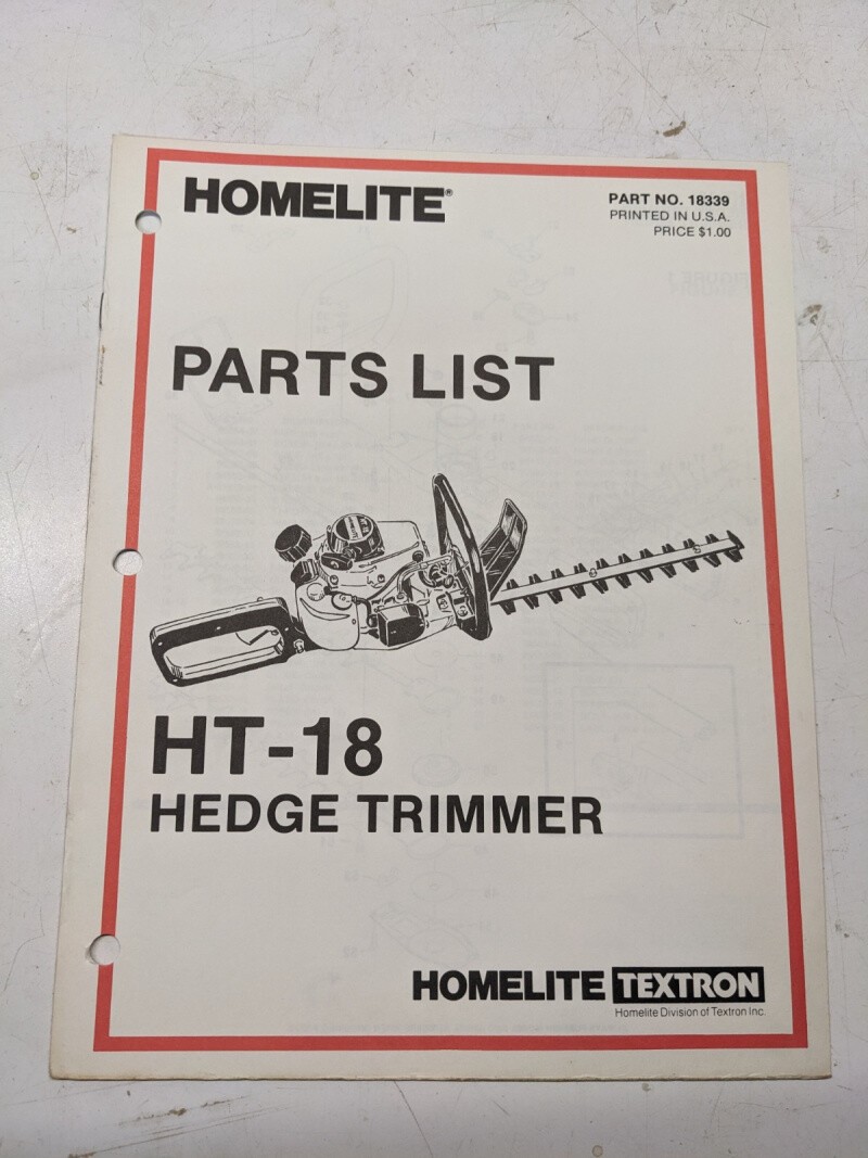 Homelite Illustrated Parts Catalog List Book Manual Hedge Trimmer Ht-18 18339