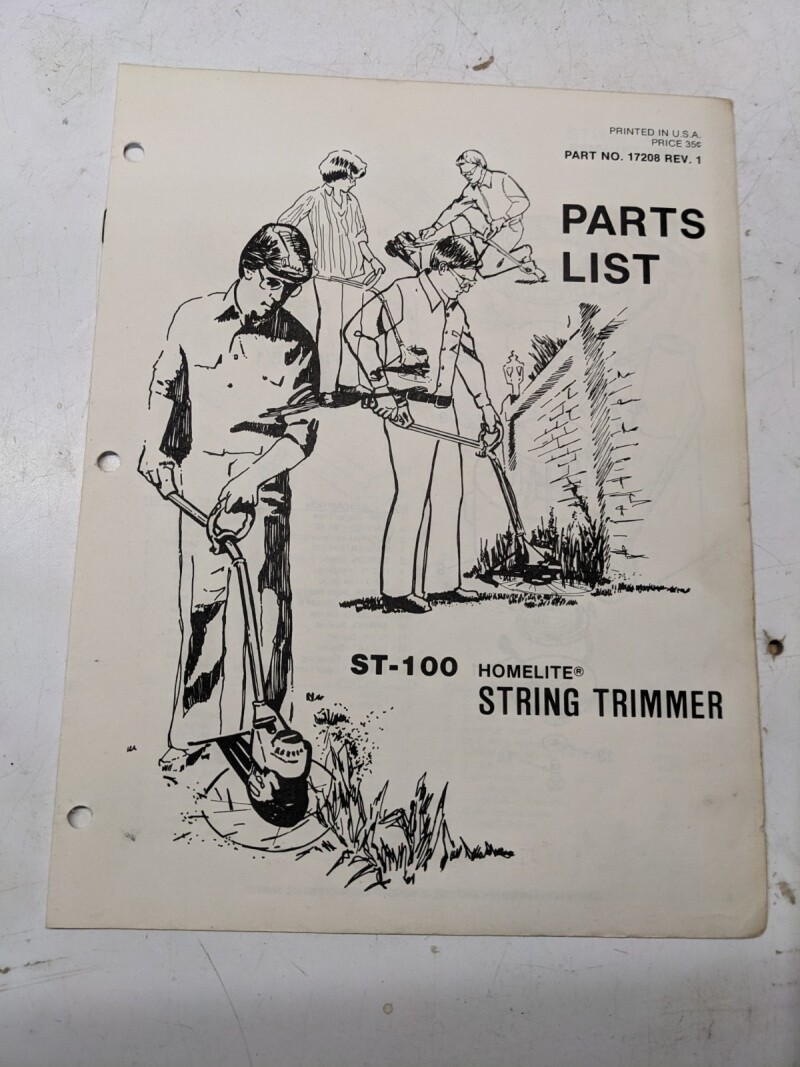 Homelite Illustrated Parts Catalog List Book Manual Trimmer St-100 17208 Rev 1