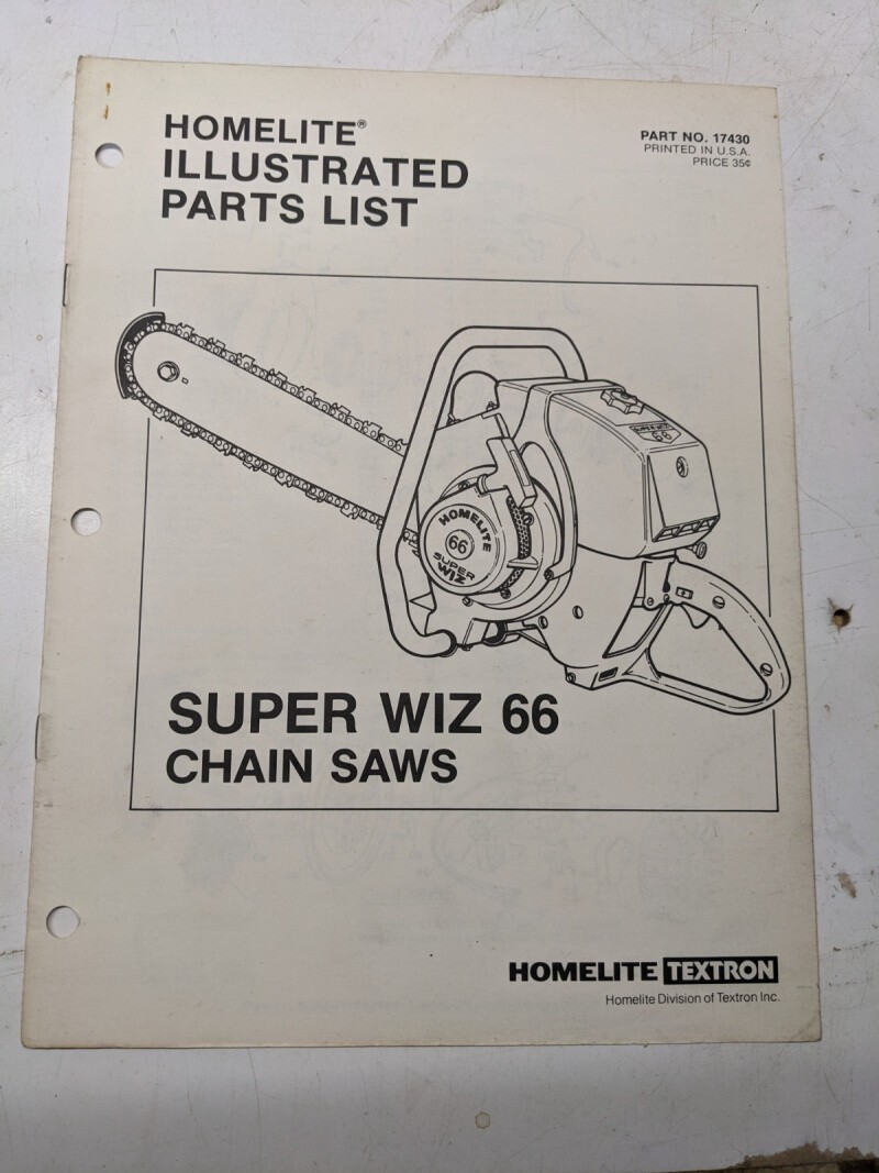 Homelite Illustrated Parts Catalog List Manual Chain Saws Super Wiz 66 17430