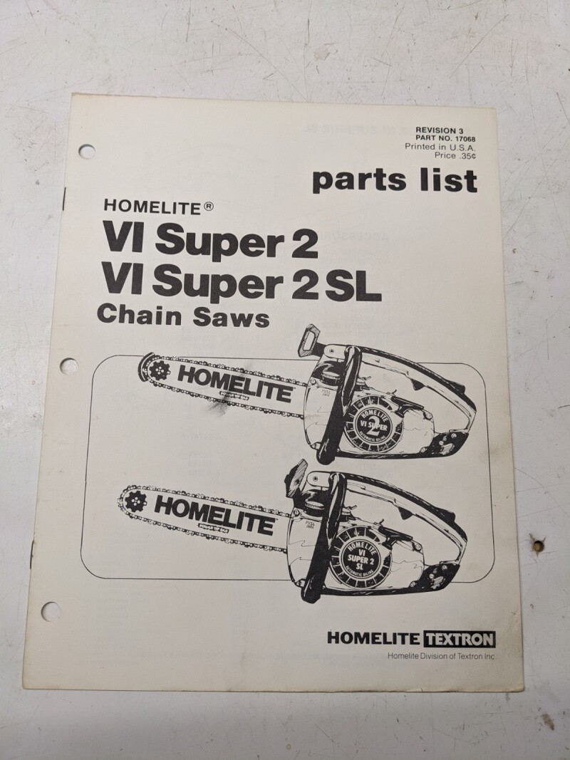 Homelite Illustrated Parts Catalog List Manual Chain Saws Vi Super 2 Sl 17068 3