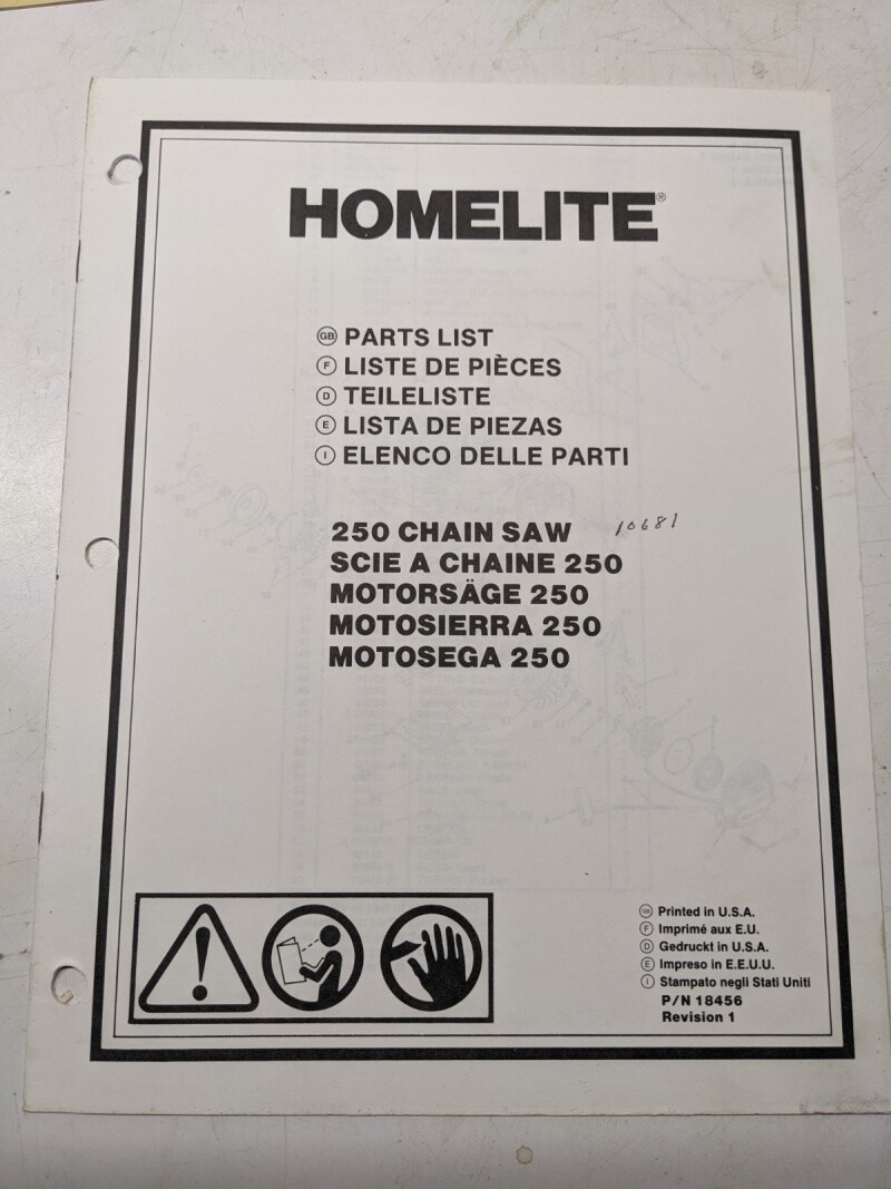 Homelite Illustrated Parts Catalog Manual List Book Chain Saws 250 14856