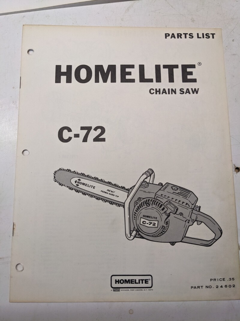 Homelite Illustrated Parts Catalog Manual List Book Chain Saws C-72 24602
