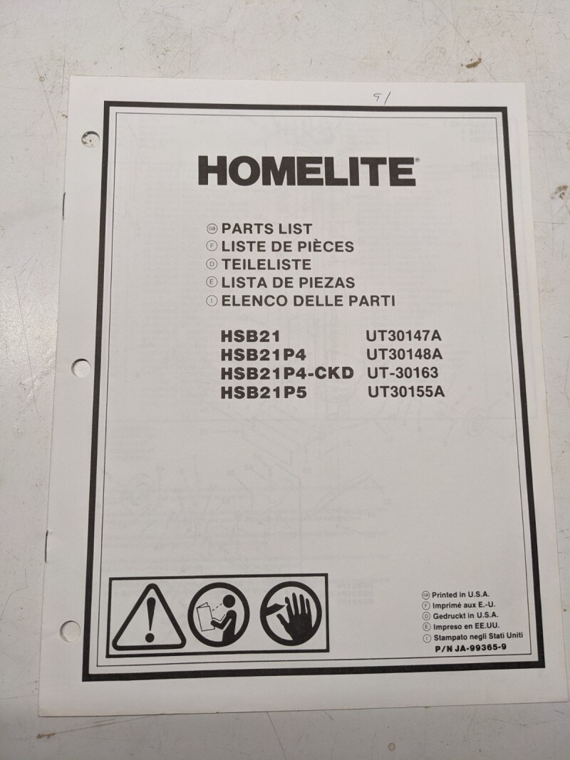 Homelite Illustrated Parts Catalog Manual List Book Mower Hsb21P4 P5 Ckd 99365