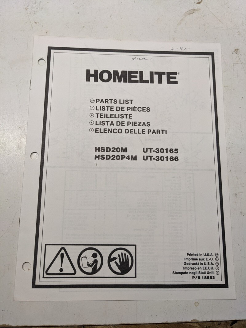 Homelite Illustrated Parts Catalog Manual List Book Mower Hsd20M P4M 18683