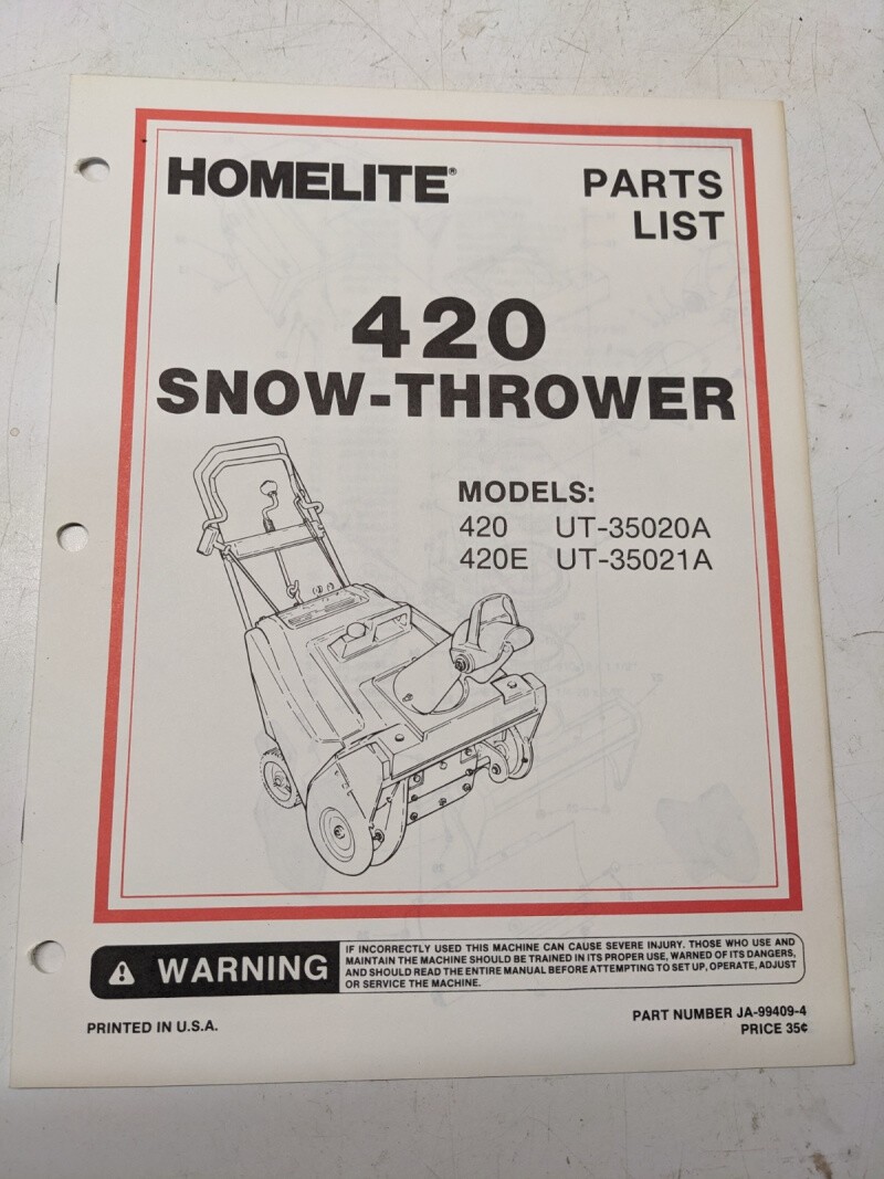 Homelite Illustrated Parts Catalog Manual List Book Snow Thrower 420E 99261-4