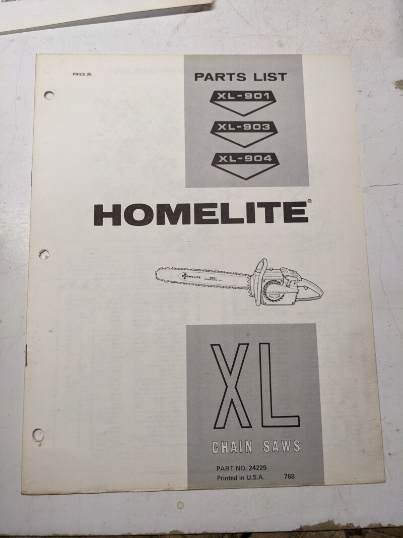 Homelite Illustrated Parts Catalog Manual List Chain Saws Xl 901 903 904 24229