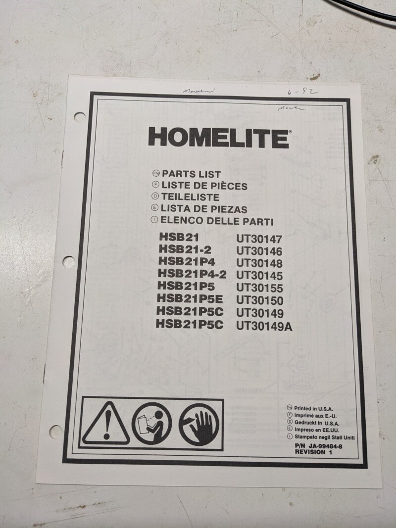 Homelite Illustrated Parts Catalog Manual List Mower Hsb 21 -2 P4 P5 E C 99484-8