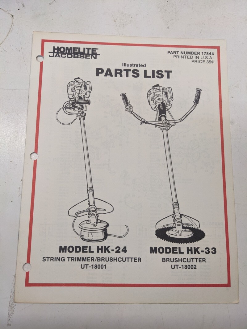 Homelite Illustrated Parts List Book Catalog Manual Trimmer Hk-24 33 17844