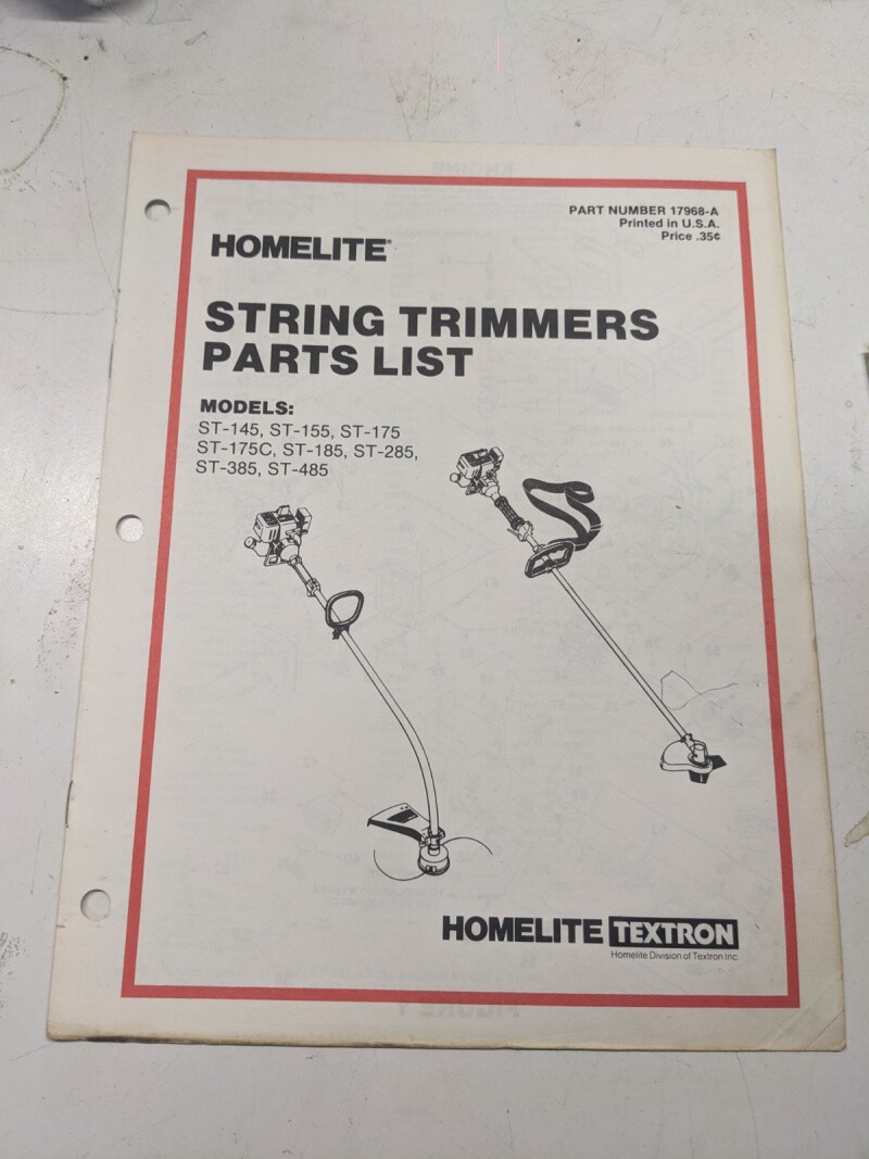 Homelite Illustrated Parts List Book Catalog Manual Trimmer St 145-485 17968-A