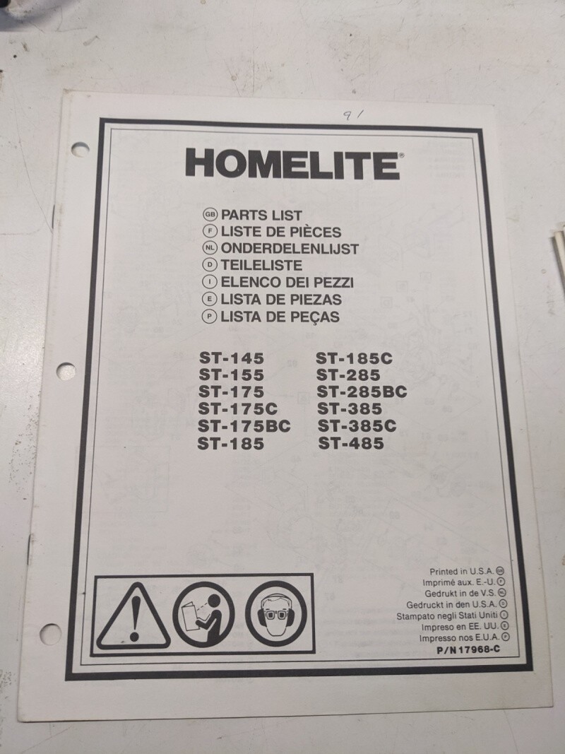 Homelite Illustrated Parts List Book Catalog Manual Trimmer St 145-485 17968-C