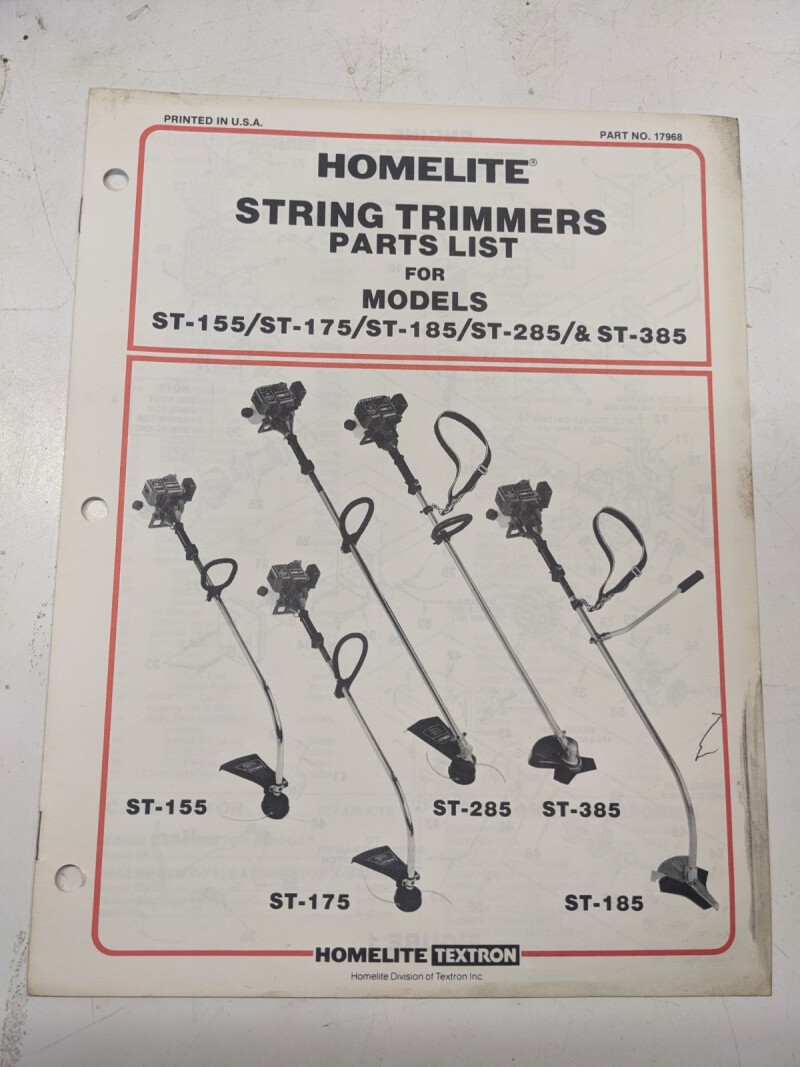 Homelite Illustrated Parts List Book Catalog Manual Trimmer St 145-485 17968