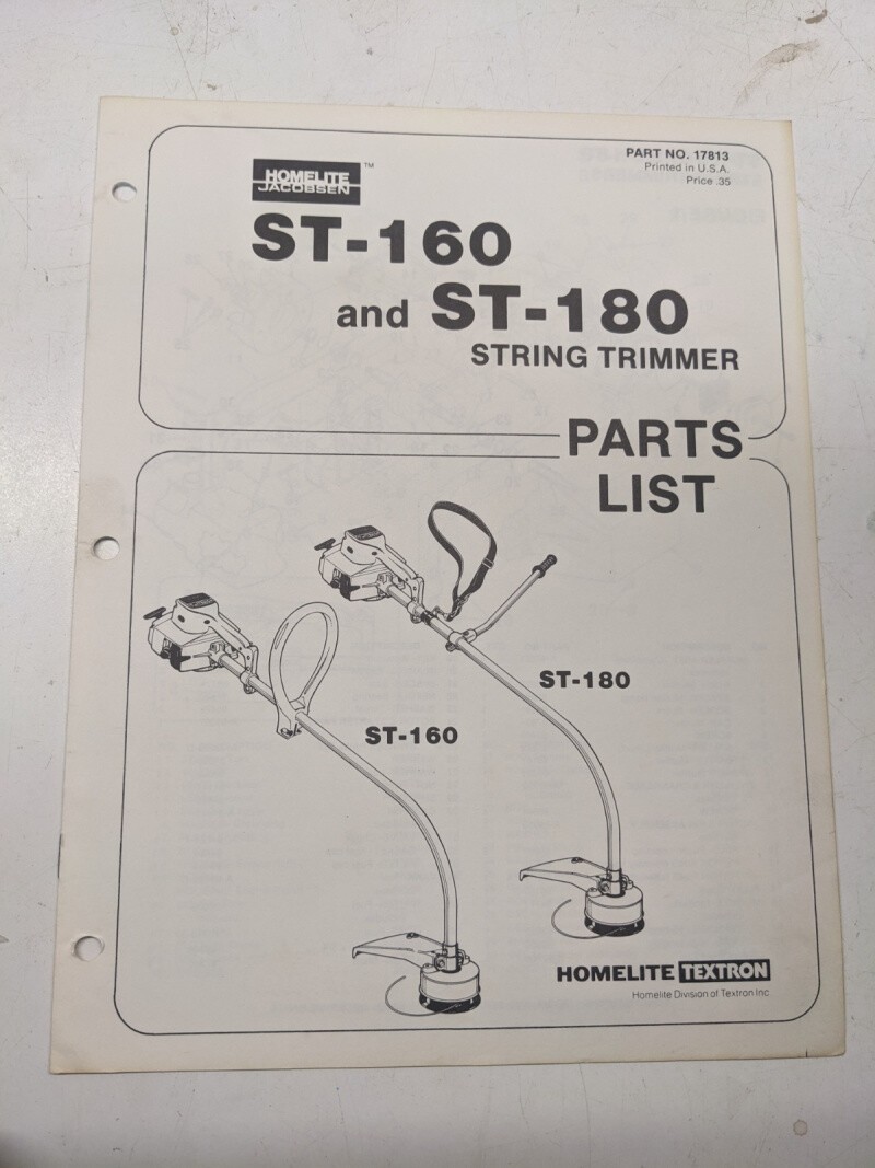 Homelite Illustrated Parts List Book Catalog Manual Trimmer St 160 180 17813