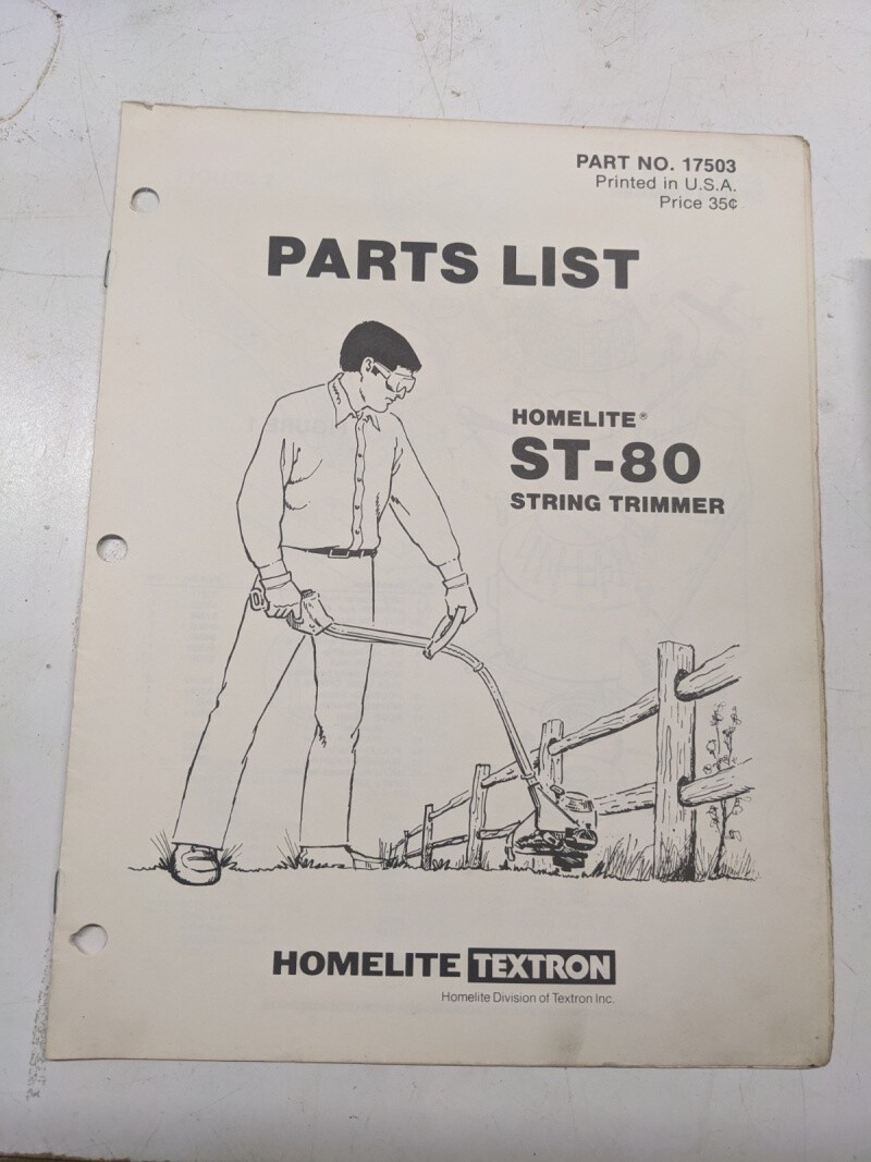 Homelite Illustrated Parts List Book Catalog Manual Trimmer St-80 17503