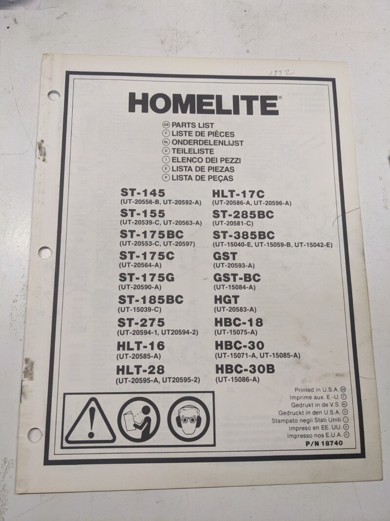 Homelite Illustrated Parts List Book Catalog Manual Trimmer St Hlt Gst Hbc 18740