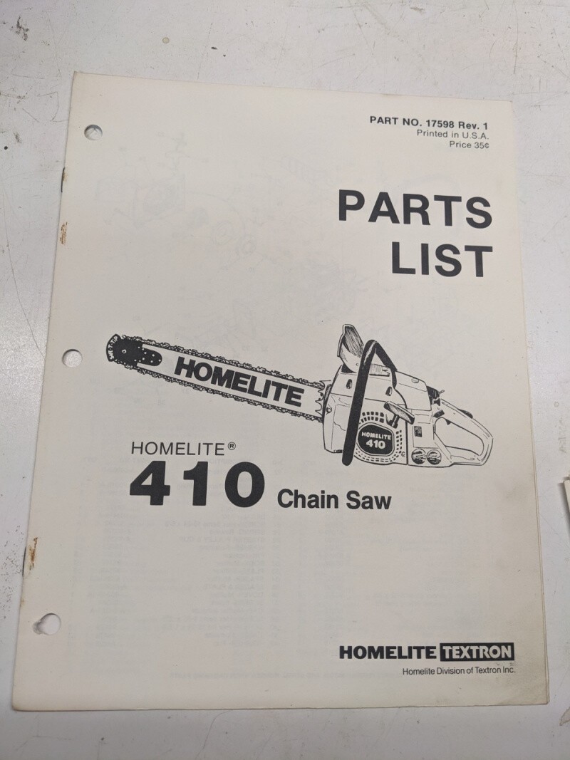 Homelite Illustrated Parts List Catalog Manual Chain Saws 410 Sl 17598 Rev 1