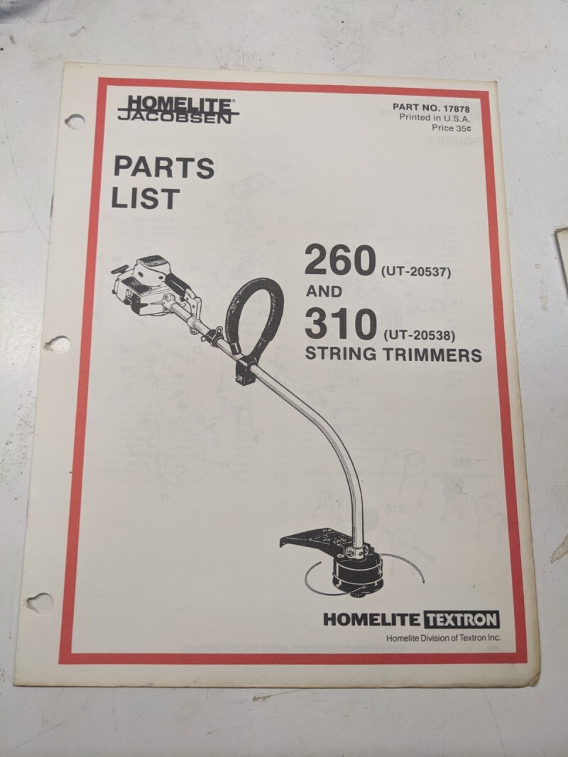 Homelite Illustrated Parts List Catalog Manual Trimmer 260 310 Ut 20537 8 17878