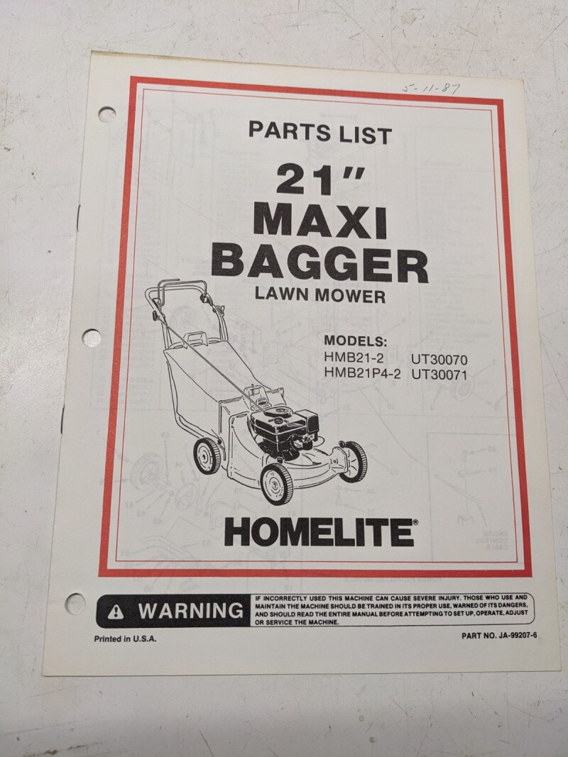 Homelite Illustrated Parts Manual List Mower 21” Maxi Bagger Hmb-21P4-2 99207-6