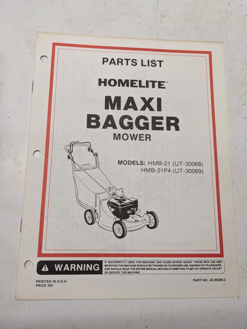 Homelite Illustrated Parts Manual List Mower 21” Maxi Bagger Hmb-21P4 99200-3