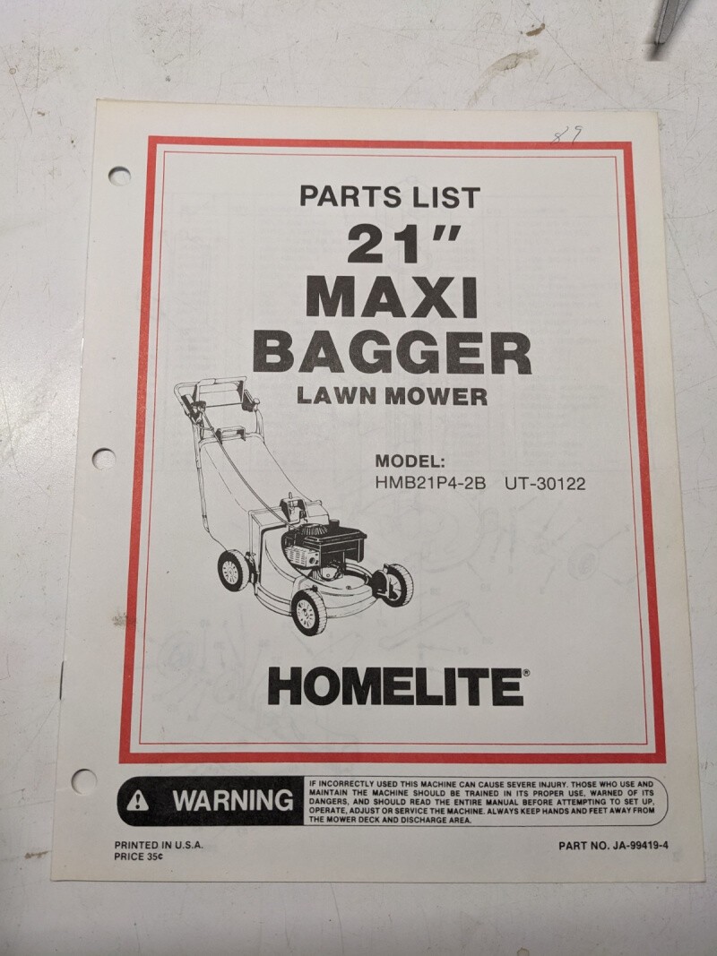 Homelite Illustrated Parts Manual List Mower 21” Maxi Bagger Hmb21P4-2B 99419-4
