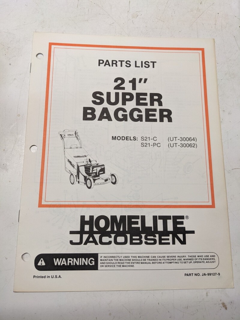 Homelite Illustrated Parts Manual List Mower 21” Super Bagger S21-Pc 99127-9