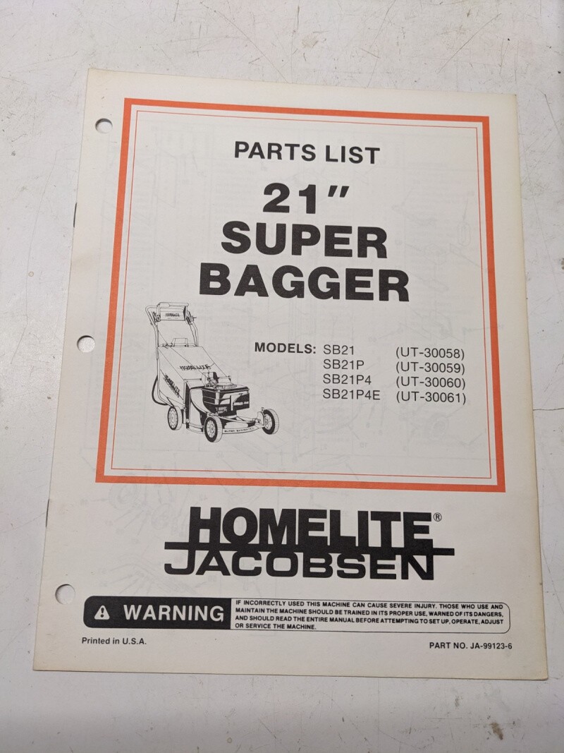 Homelite Illustrated Parts Manual List Mower 21” Super Bagger Sb21P4E 99123-6