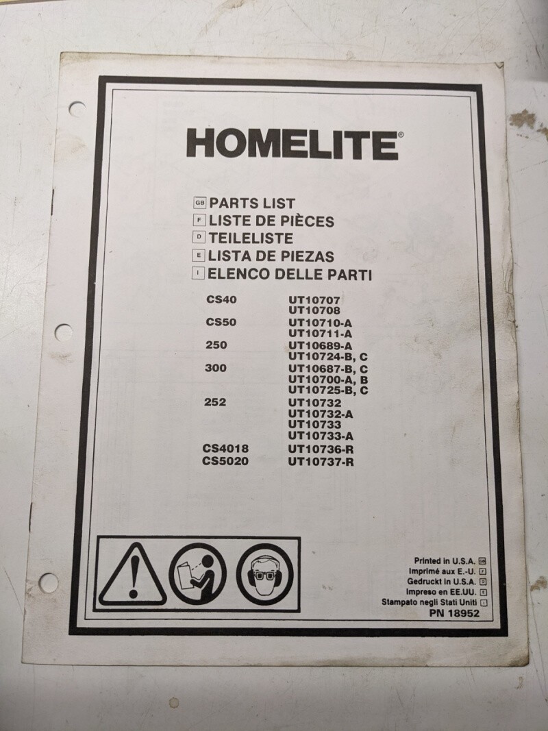 Homelite Part Catalog Manual List Chain Saw Cs 40 50 250 300 252 4018 5020 18952