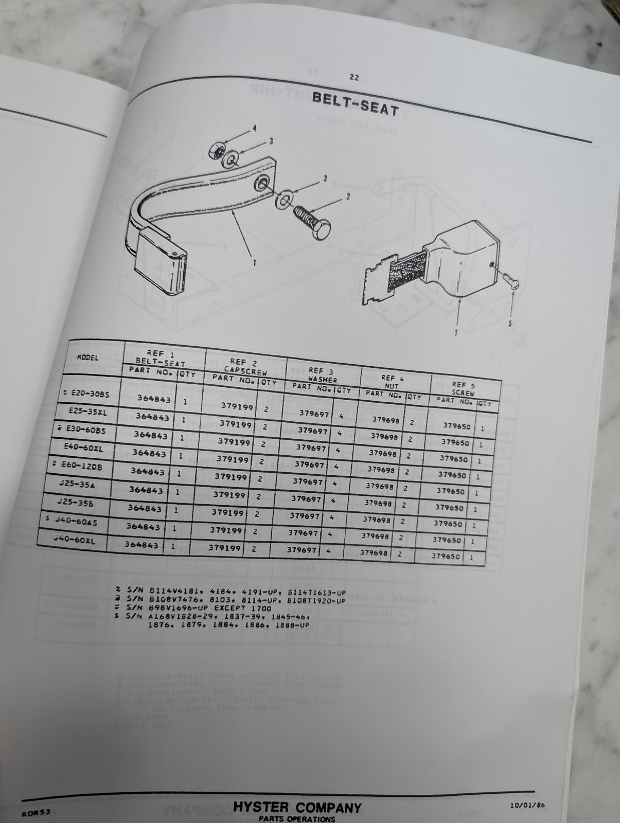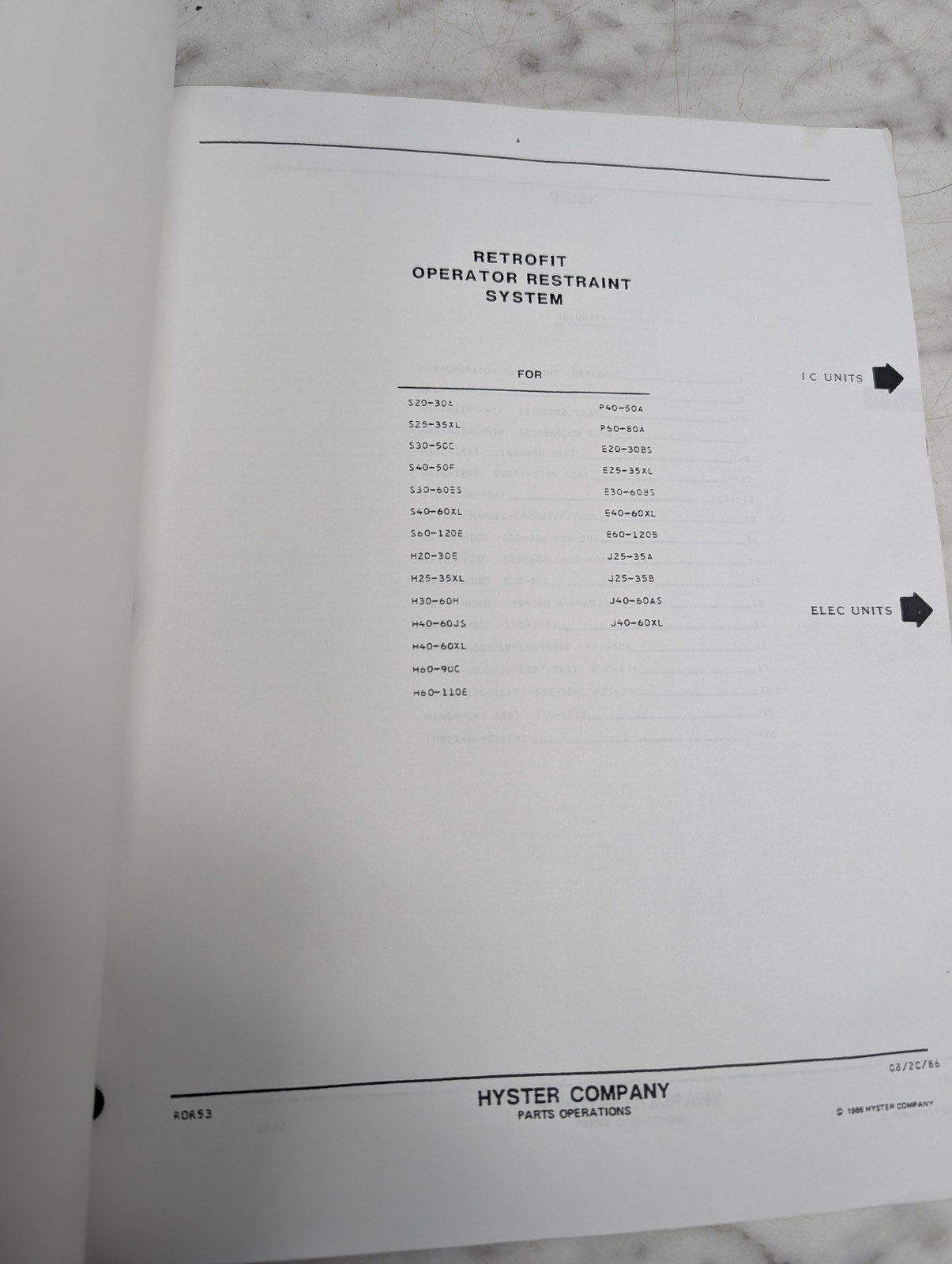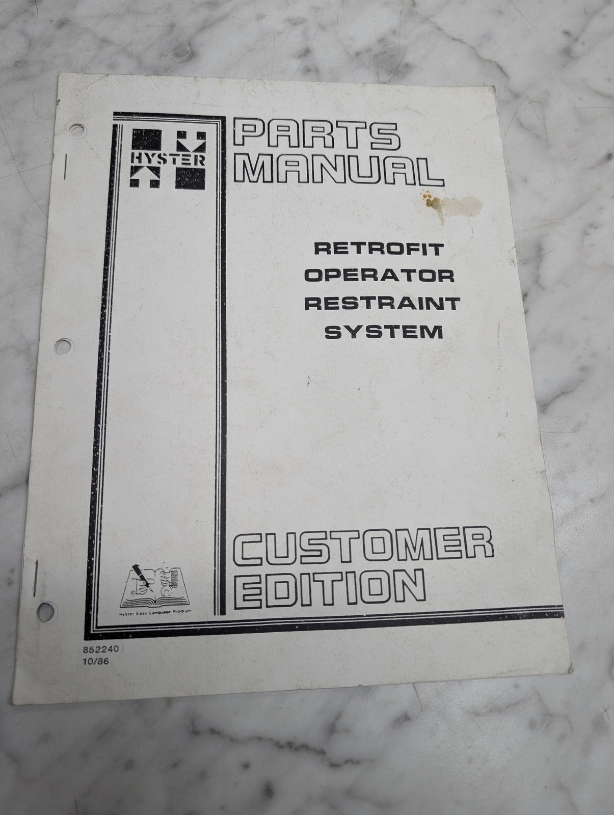Hyster 852240 Parts Manual Retrofit Operator Restraint System Customer Edition