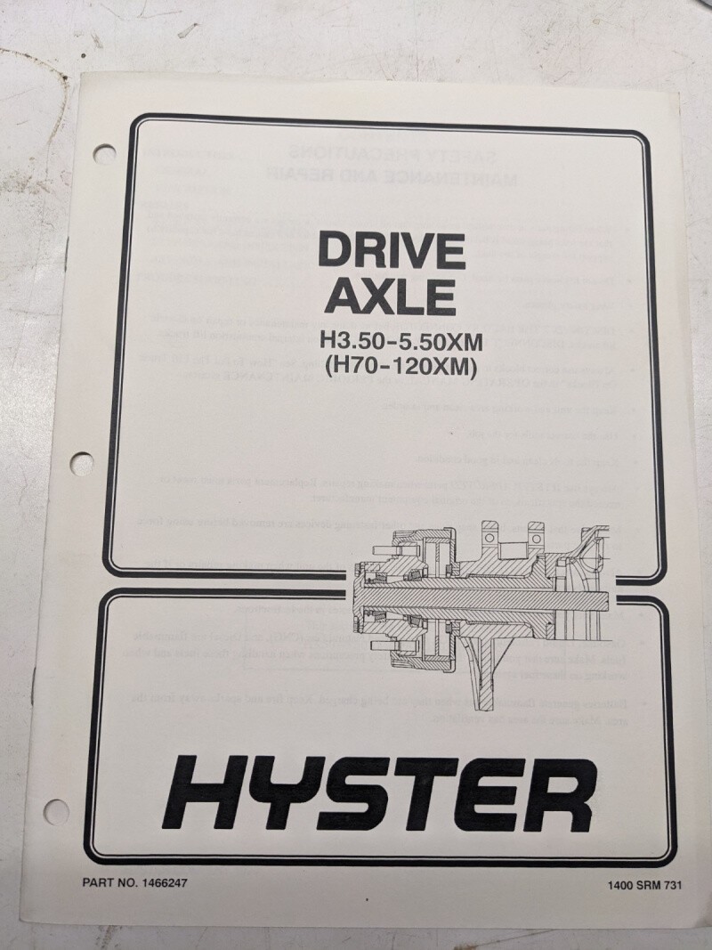 Hyster Drive Axle H70-120Xm 1466247 1400 Srm 731 1999 Service Manual Shop Book