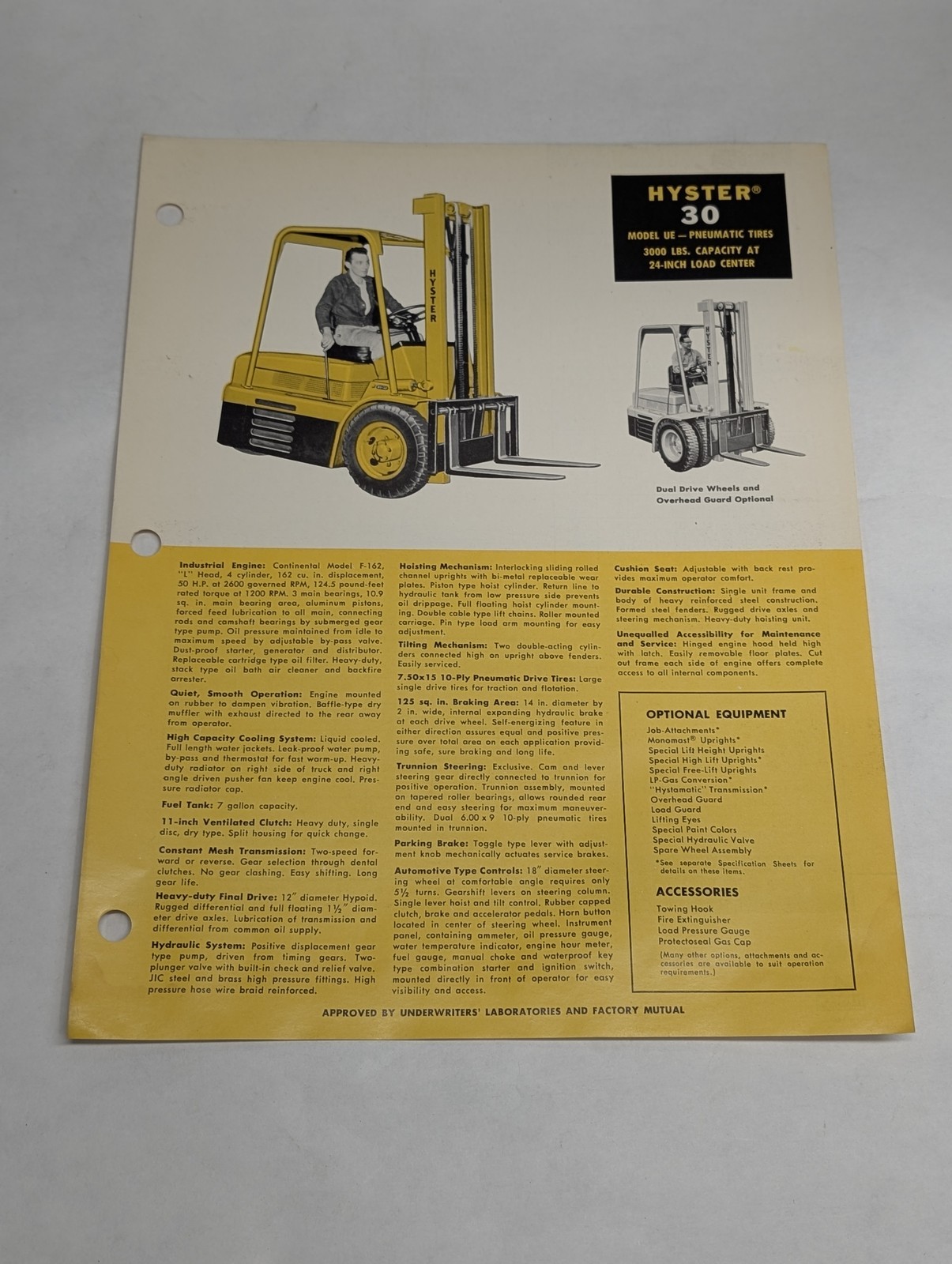 Hyster Fork Lift Truck Sales Brochure Information Sheet Ue 30 1956
