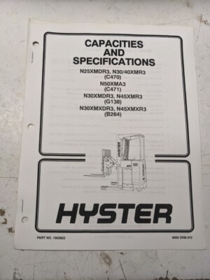 Hyster Fork Lift Truck Service Manual Capacities And Specifications N30/40Xmr3