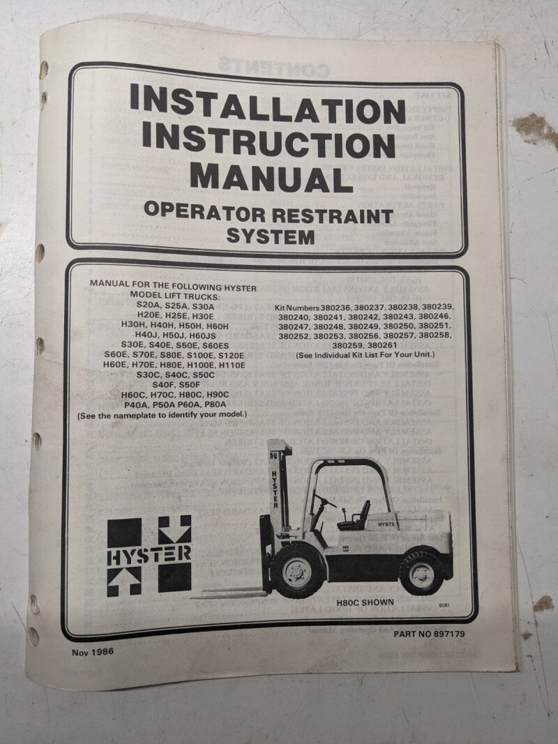 Hyster Installation Instruction Manual Operator Restraint System 1986 897179