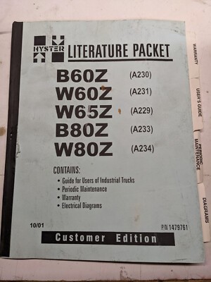 Hyster Literature Packet B60Z W60Z W65Z B80Z W80Z Industrial Lift Truck 2001