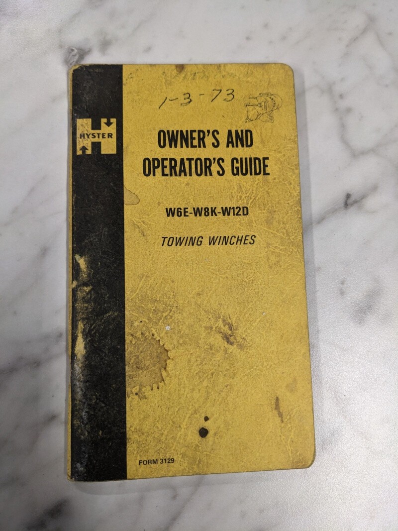 Hyster Owner Operator Service Manual W6E W8K W12D Towing Winches 1972