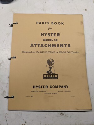 Hyster Parts Book Manual List Model 40 Attachments Ue-30 Ye-40 He-50 Lifttruck