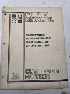 Hyster Parts List Book Manual Electrics W40-60Bl/Bf B40-60Bl/Bf C40-60Bl/Bf 1983