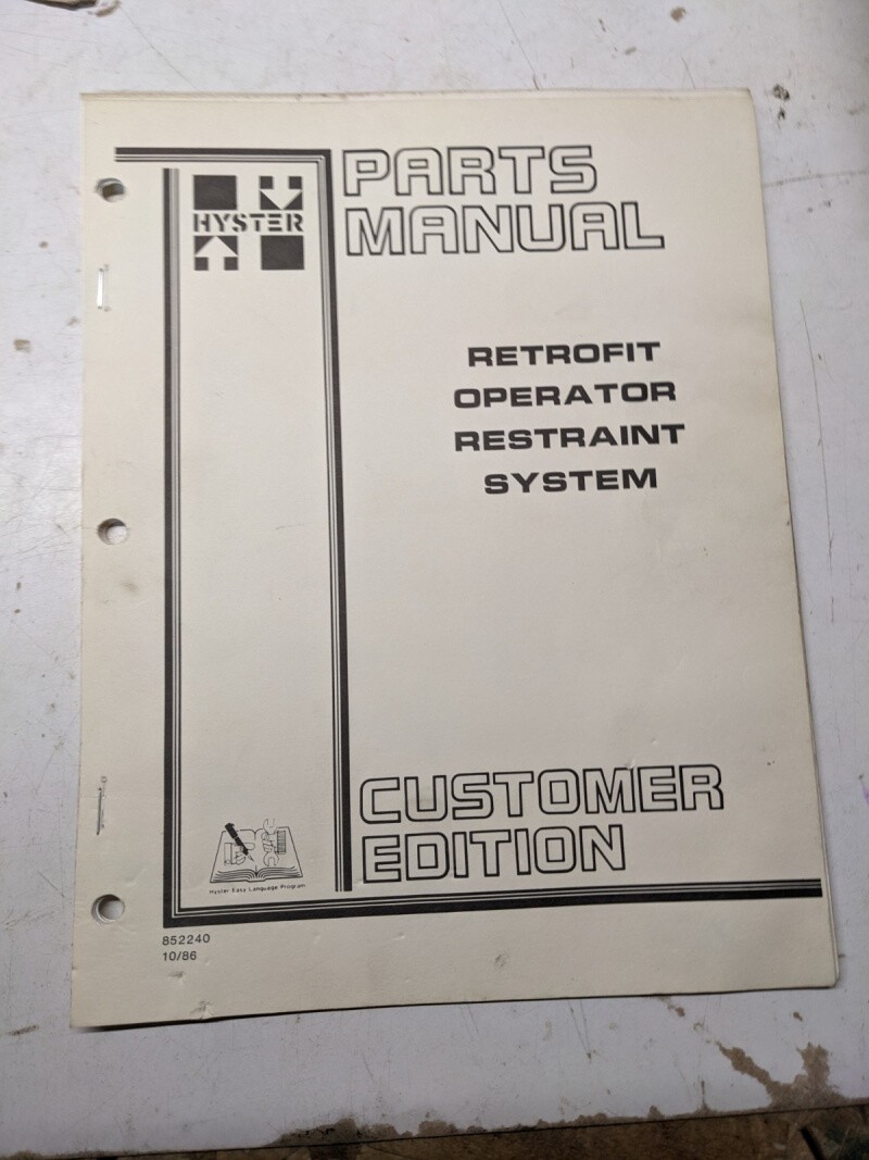 Hyster Parts List Book Manual Retrofit Operator Restraint System 1986 852240