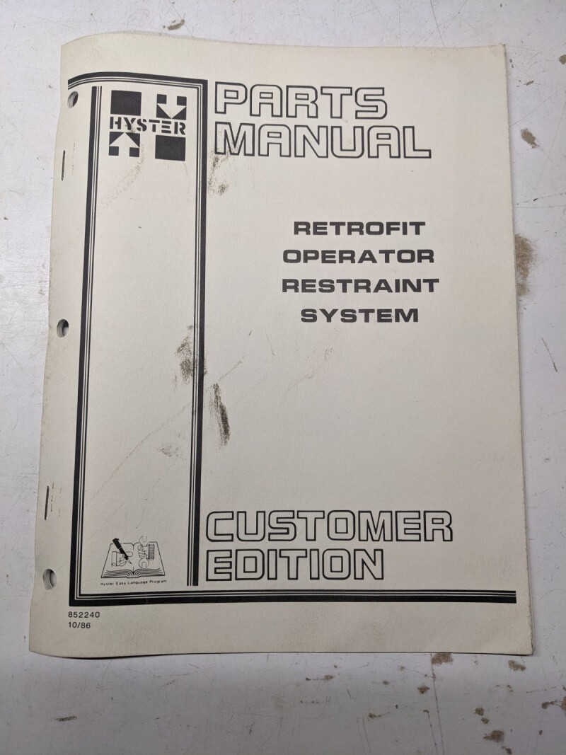 Hyster Parts List Book Manual Retrofit Operator Restraint System 1986 852240