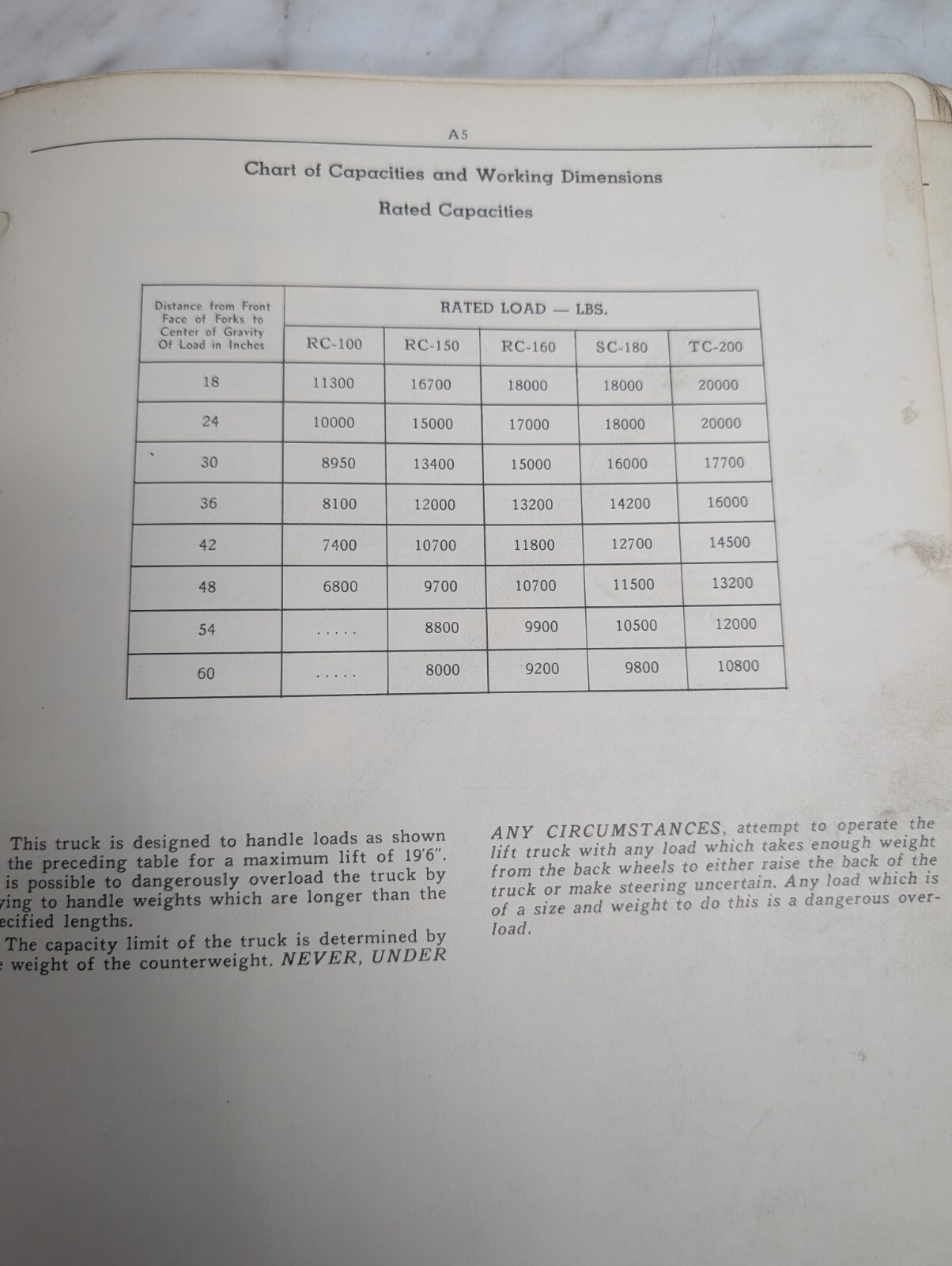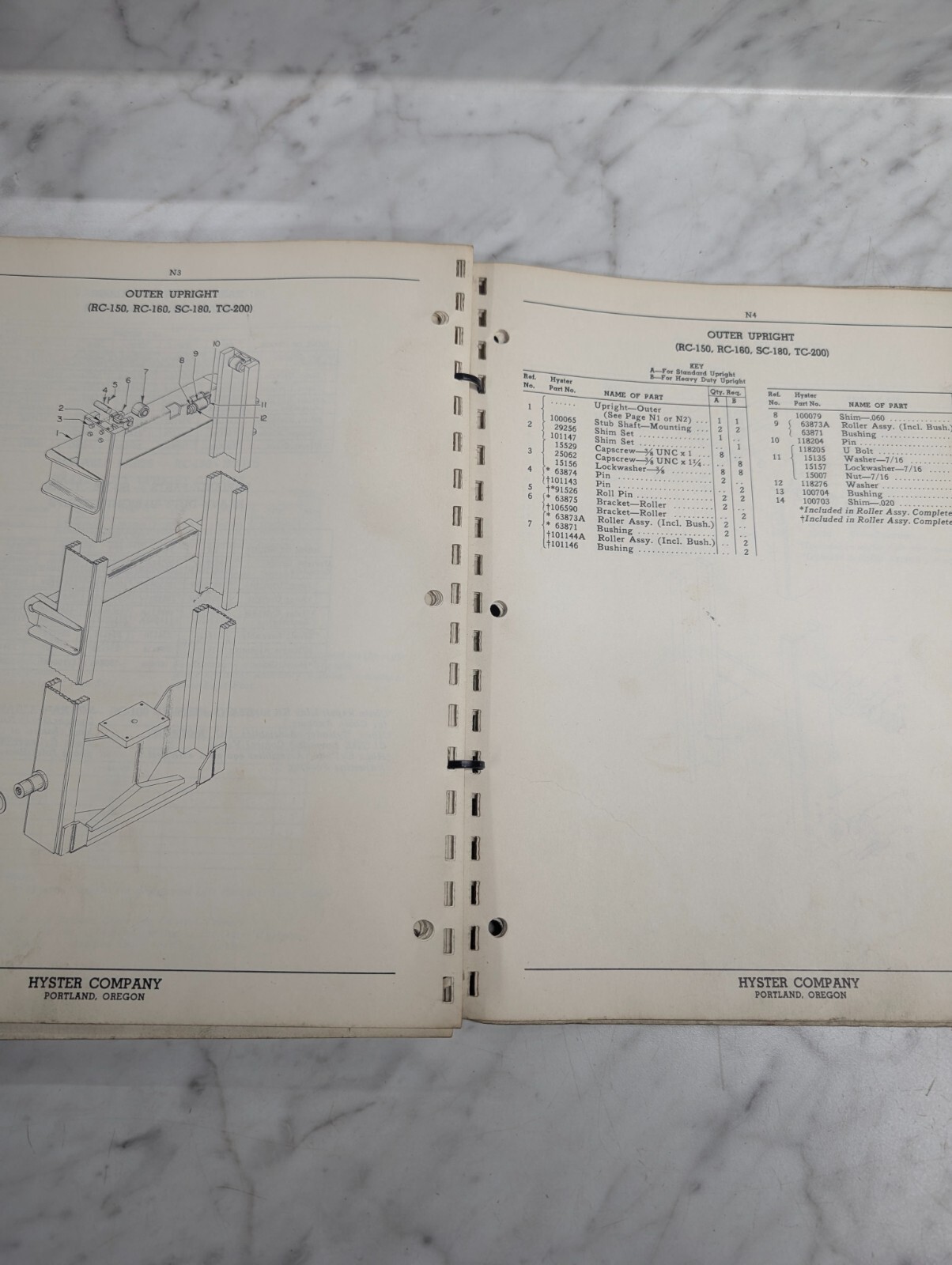 Hyster Parts List Catalog Manual Rc-100 Rc-150 Rc-160 Sc-180 Tc-200 Forklift