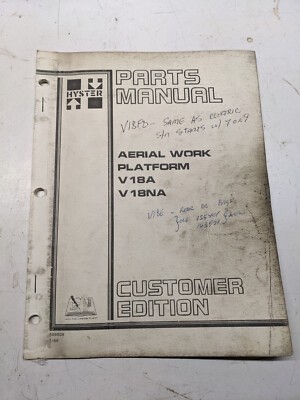Hyster Parts Manual Book List Aerial Work Platform V18A V18Na 1986 Oem Repair
