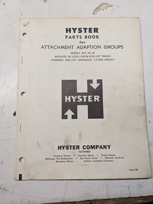 Hyster Parts Manual Book List Attachments Fork Truck Side Shift Carriage Yt-40