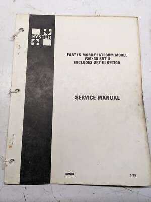 Hyster Service Manual Aerial Work Platform V36/30Rt Ii Iii 1985 Hyd Elec Repair