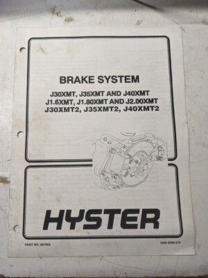 Hyster Service Manual Brake System J30Xmt2 J35Xmt2 J40Xmt2 1999 Fork Lift Truck