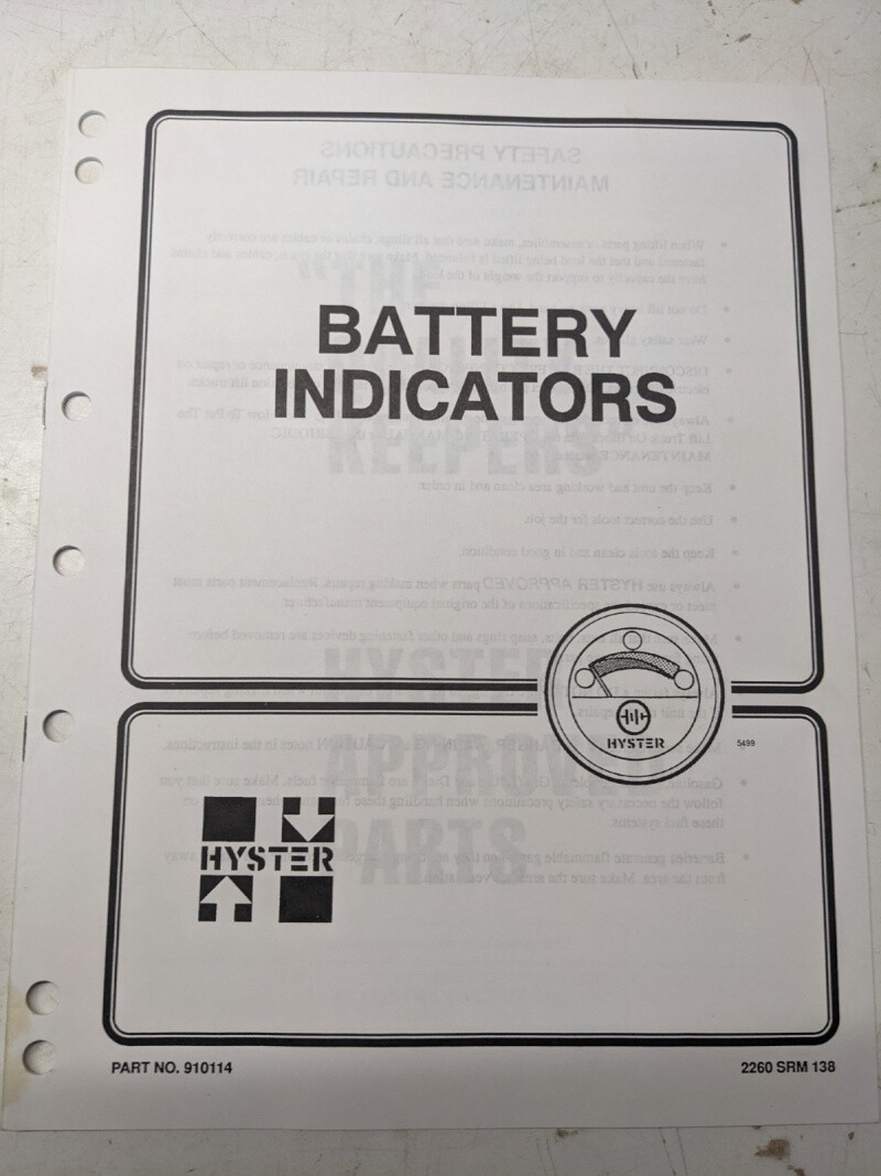 Hyster Service Manual Fork Lift Repair Battery Indicators 910114 1996 Shop Book