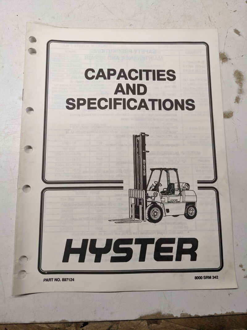 Hyster Service Manual Fork Lift Repair Capacities & Specifications 897124 1995