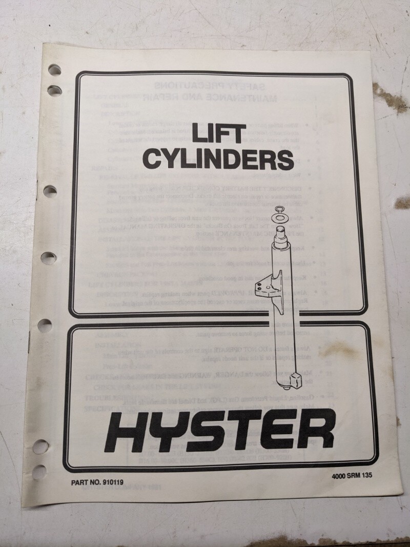 Hyster Service Manual Fork Lift Repair Lift Cylinders 910119 1995 4000 Srm 135