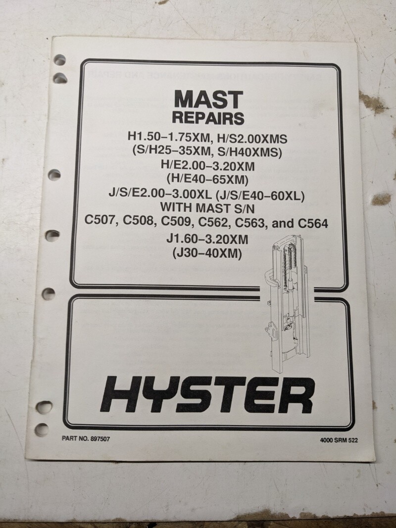 Hyster Service Manual Fork Lift Repair Mast Repairs 897507 4000 Srm 522 1994