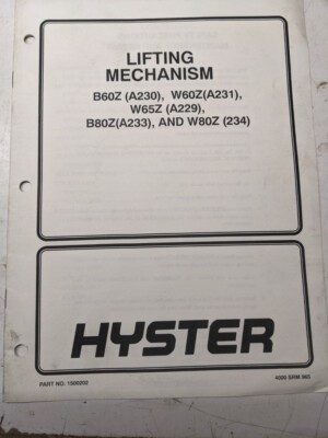 Hyster Service Manual Fork Lift Truck Lifting Mechanism B60Z W60Z W65Z B80Z W80Z