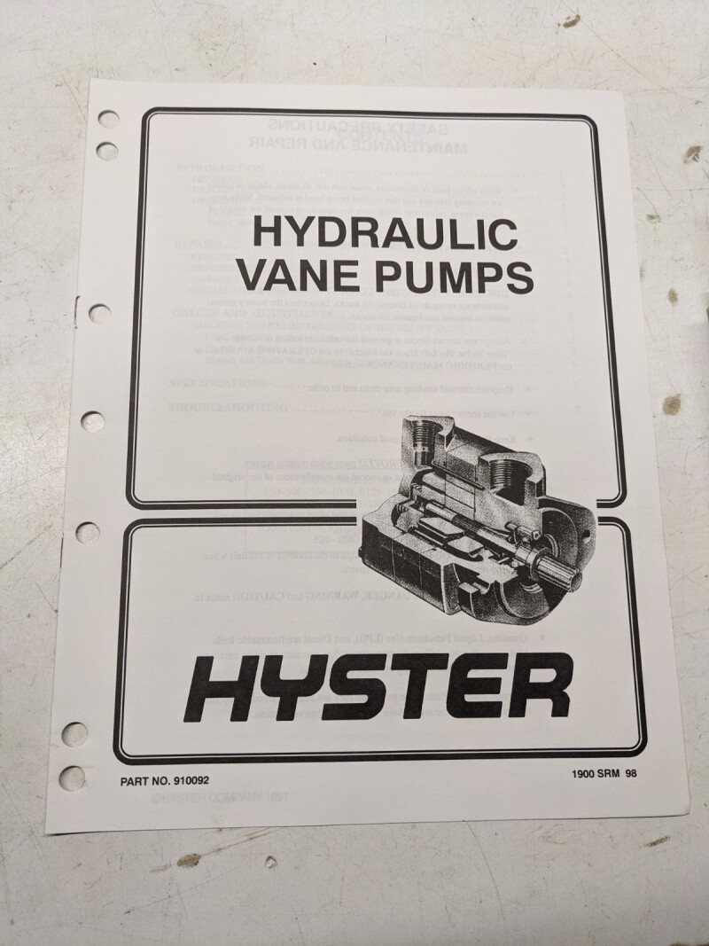 Hyster Service Manual Hydraulic Vane Pumps 910092 1997 Fork Lift Shop Book